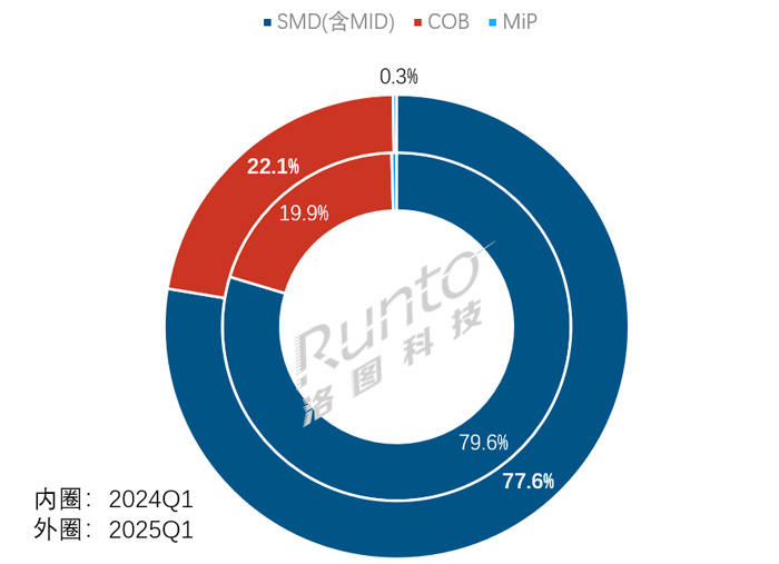 2025Q1 中国大陆小间距LED显示屏市场按销售额分封装技术结构及变化